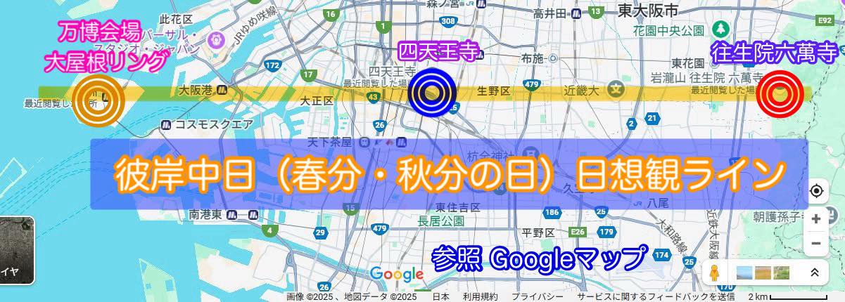 このことは、上宮太子の創建した四天王寺の日想観、そして、河内・往生院の日想観にも何らか繋がるものとも言えます。