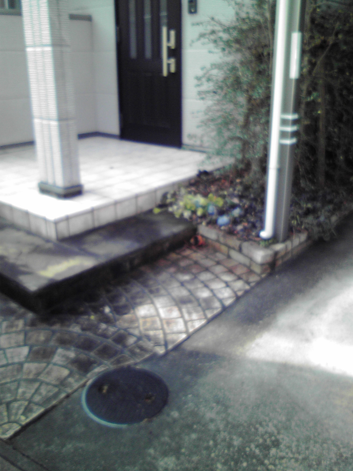 かわいそうなのですが、植栽を撤去して階段を広げ、、ガーデンシンクと物置を置き、よごれてきたなくなったコンクリを石貼りして、とってもすっきり綺麗になりました。