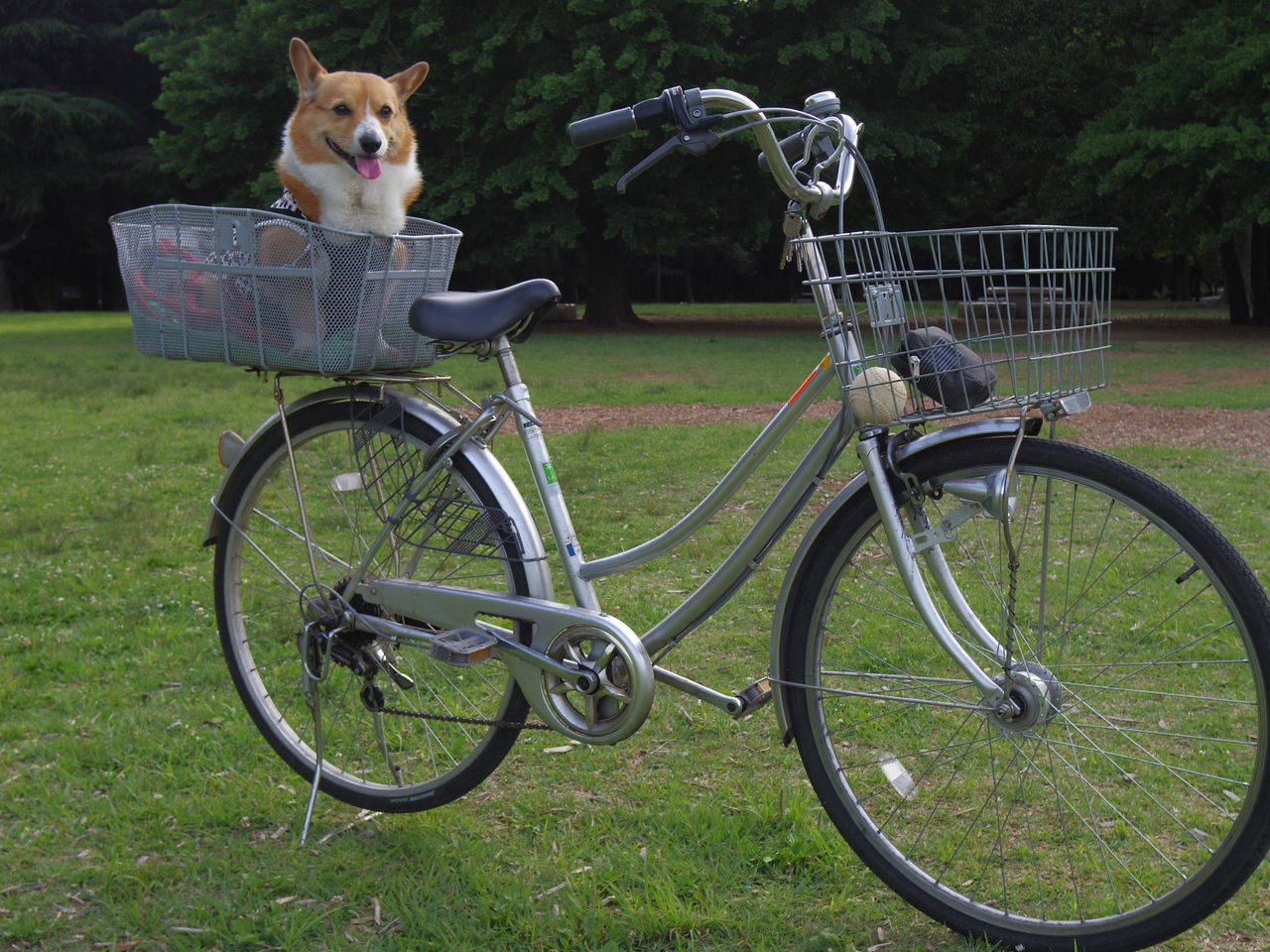 毎朝、まろんオーナーの後ろのカゴに乗り、公園にご出勤でございます(笑)
