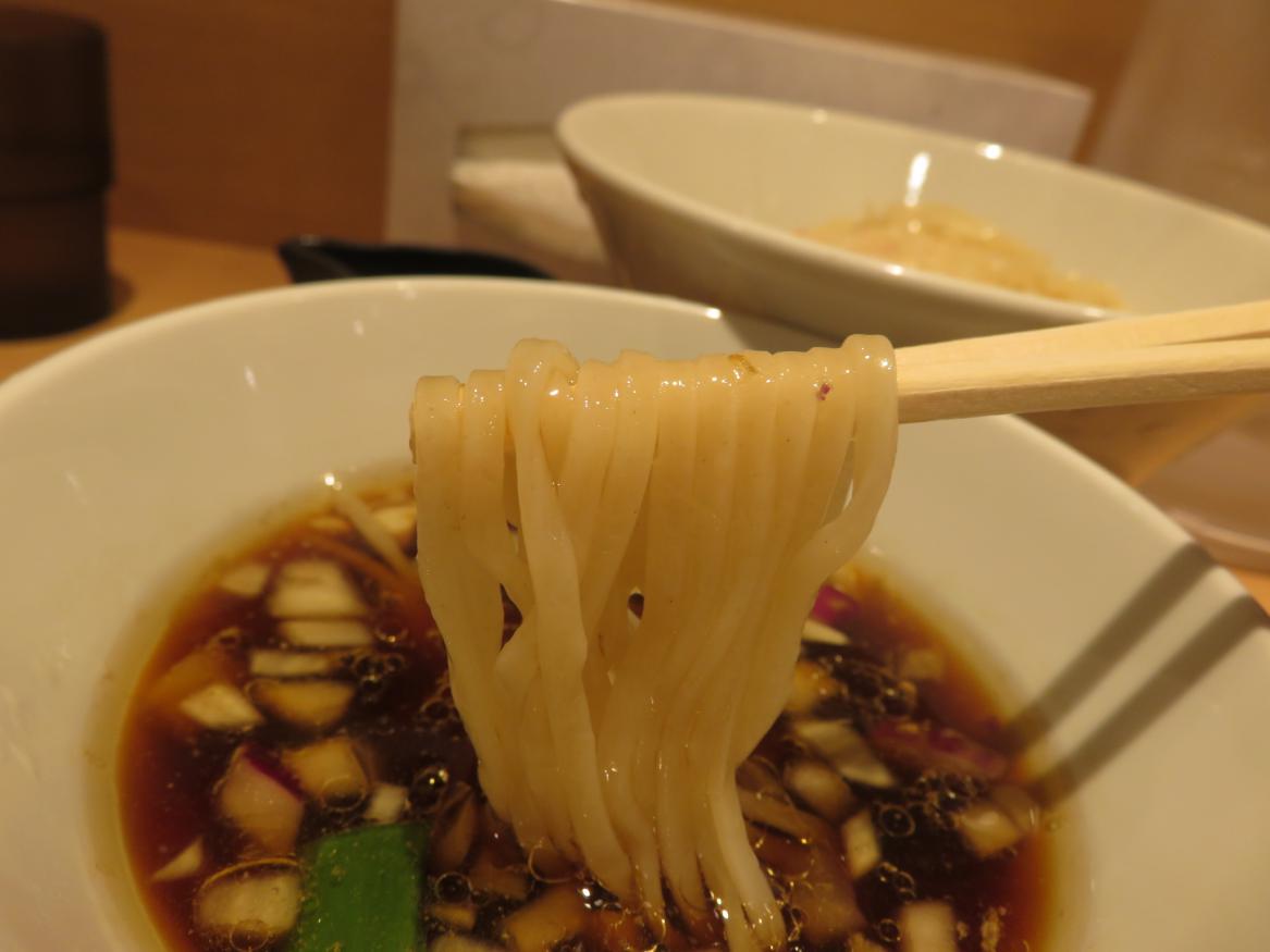 つけ汁は鶏出汁に油を厚く加えたもの。