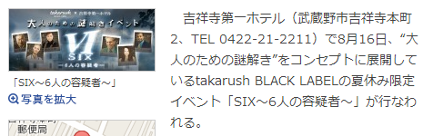 吉祥寺第一ホテルで謎解きイベント「SIX~6人の容疑者~」│東京都