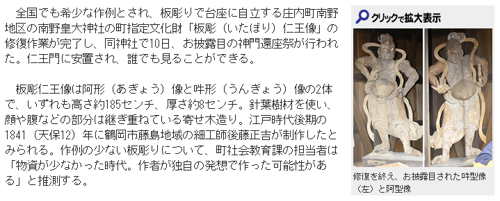 「板彫仁王像」修復が完了、お披露目│山形県