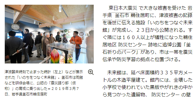 - いのちをつなぐ未来館(岩手県釜石市鵜住居町)