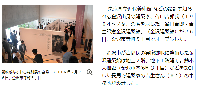 谷口吉郎氏の記念建築館、オープン│石川県