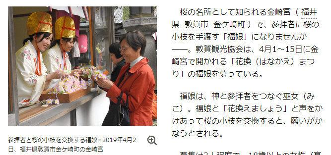 敦賀・金崎宮での「花換まつり」、福娘を募集│福井県
