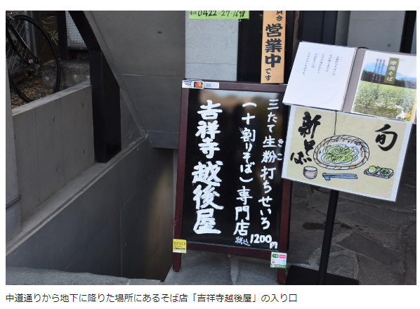 吉祥寺の中道通りに10割そば屋季節ごとにそば粉変える│東京都