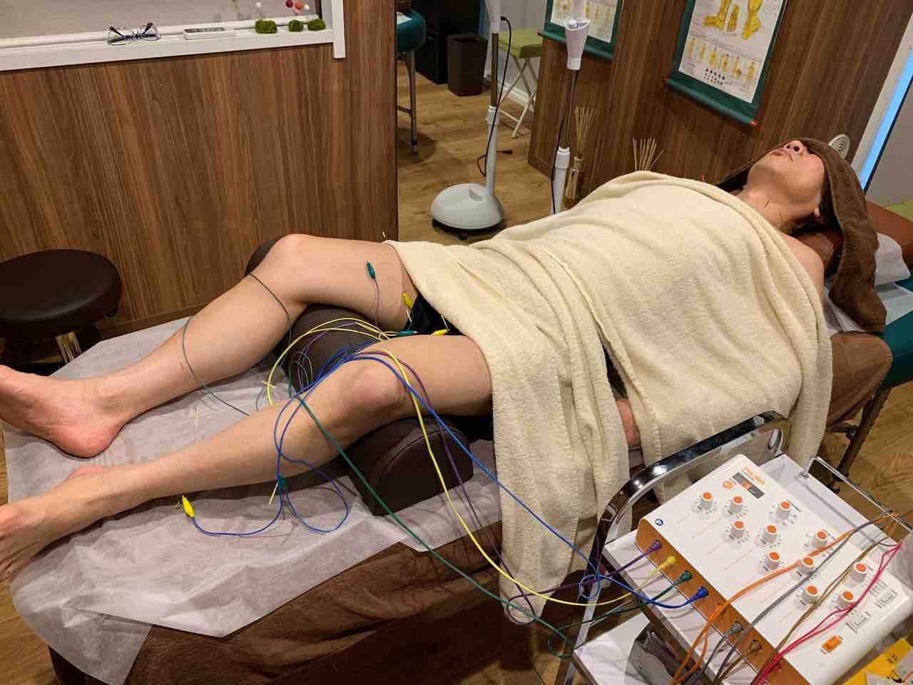 緊張が強く起きている場所には、パルス(低周波鍼通電)治療を行うことも。