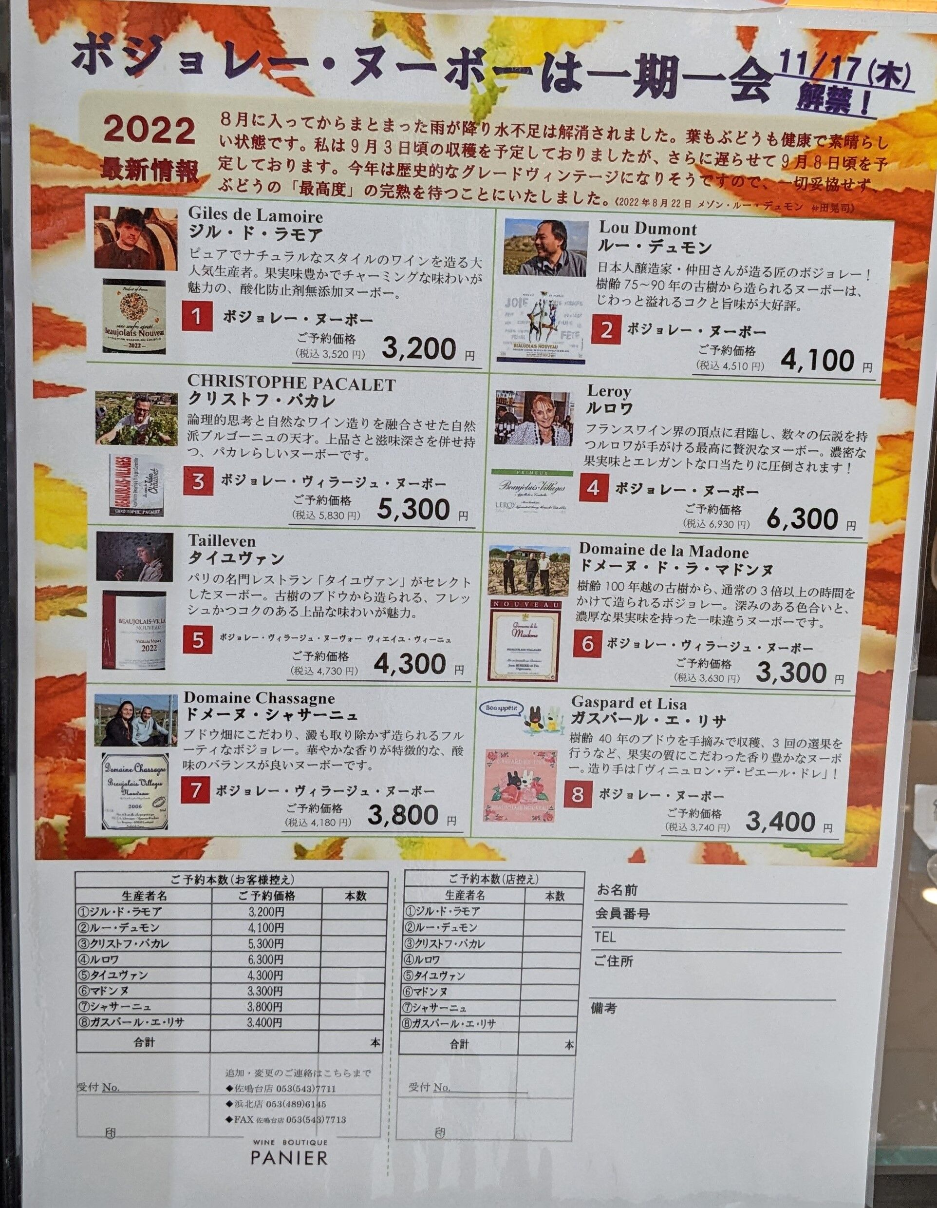 待ちに待ったボジョレーヌーボーご予約受付開始です。