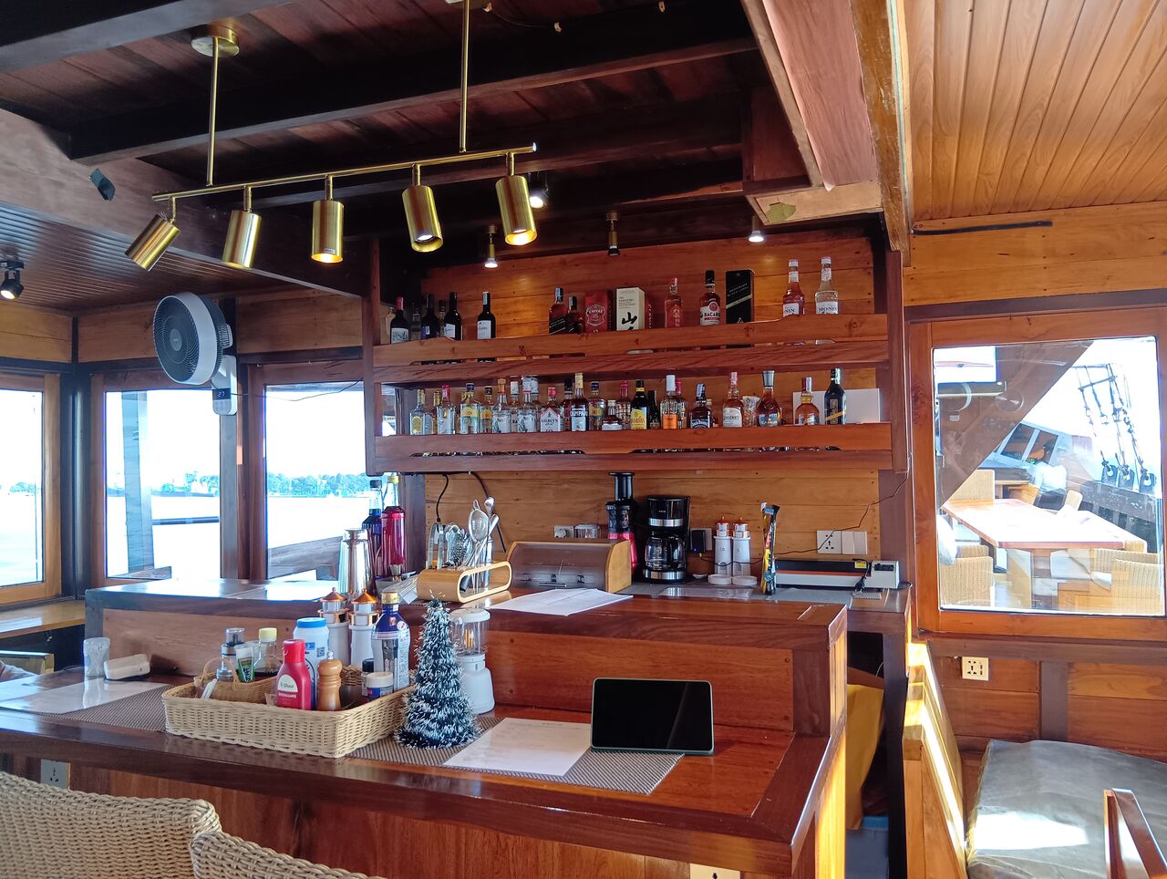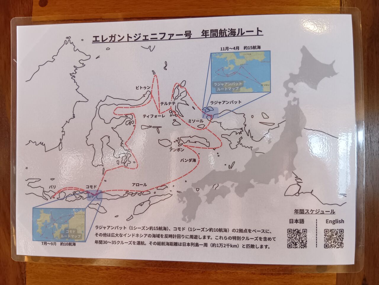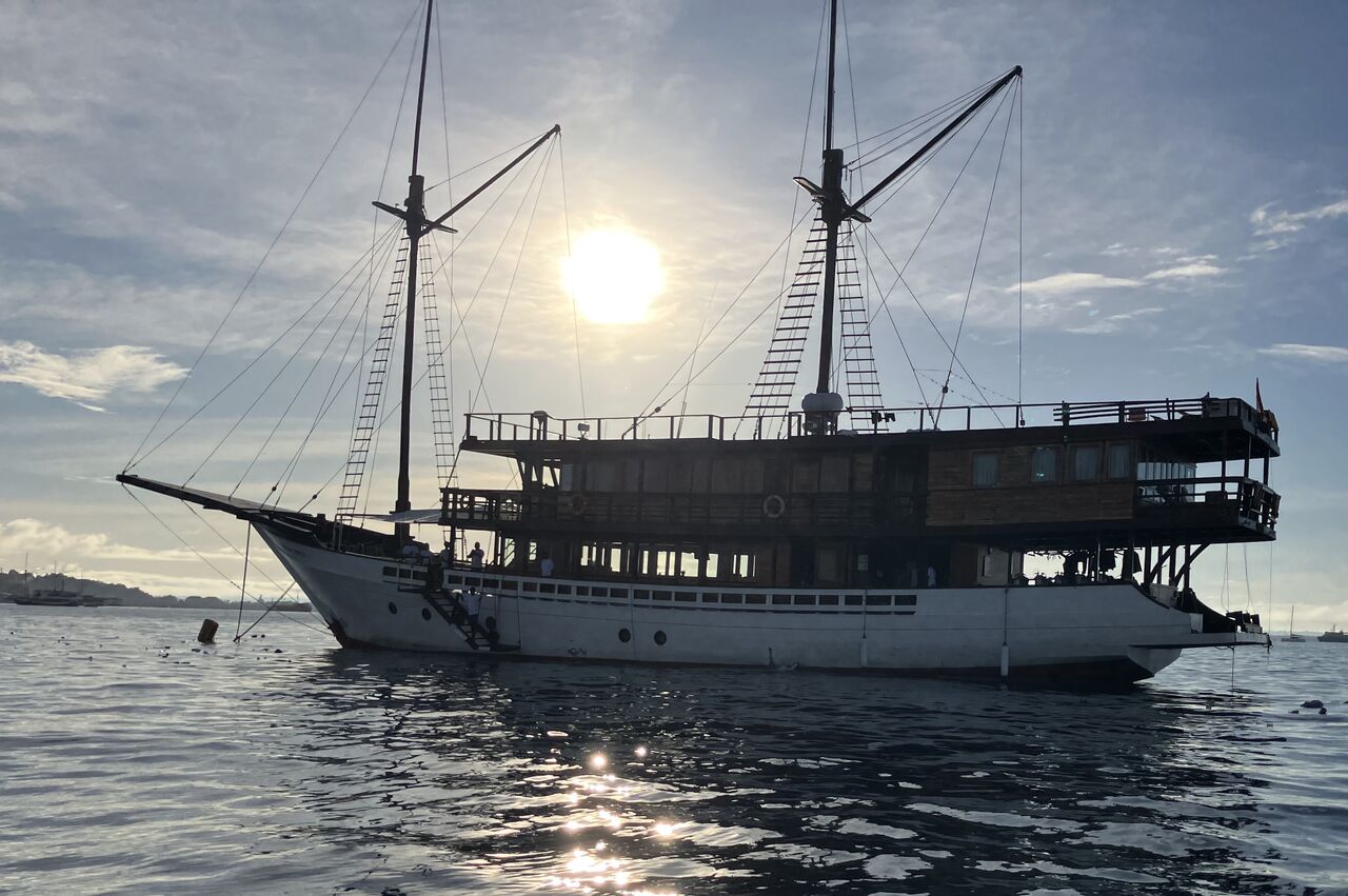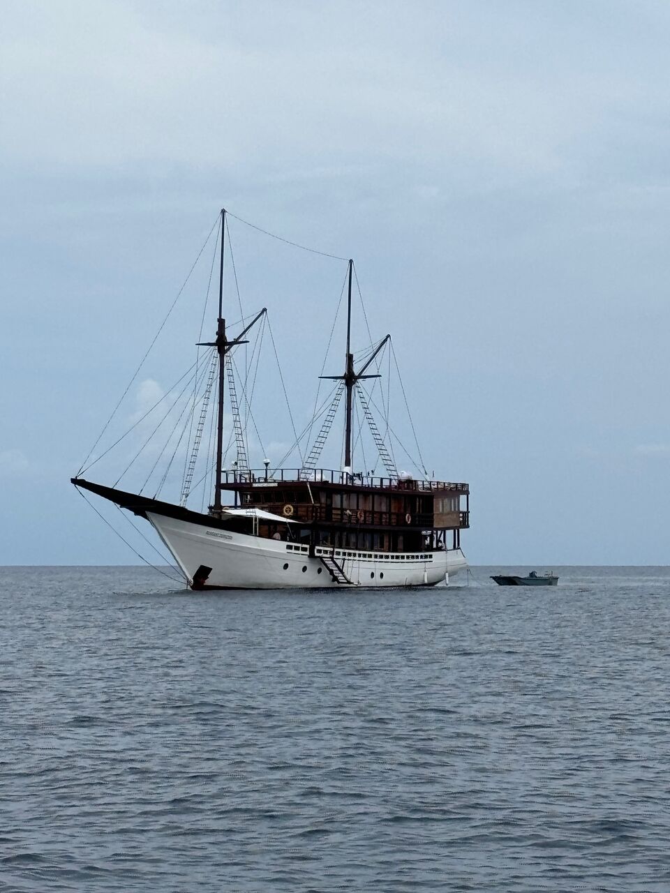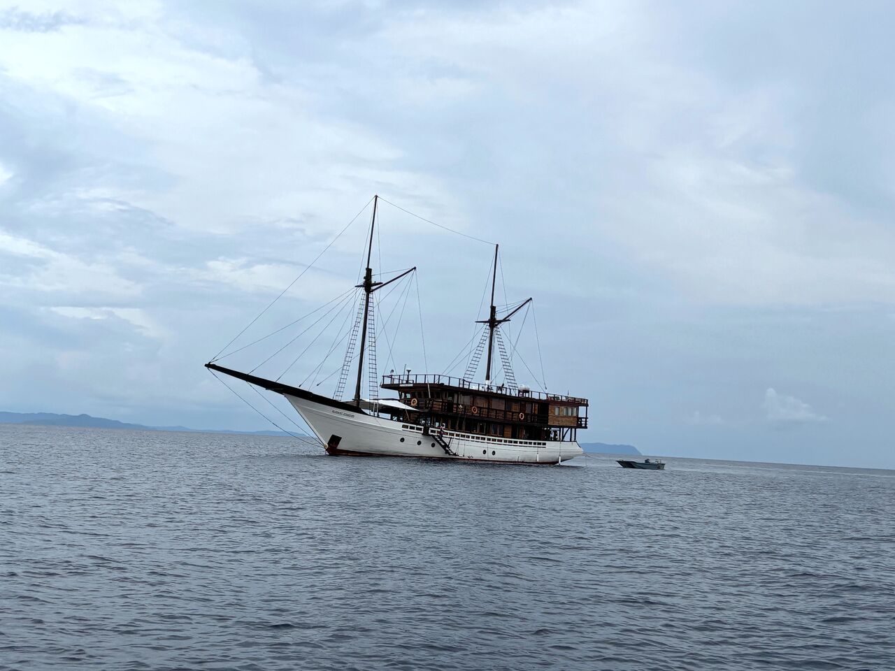 インドネシア・メナドのあるのスラウェシ島の伝統的帆船をモデルに木の温もりも感じられる船でコロナ時に造船したこともありエマジェンシールームなんかも完備されており