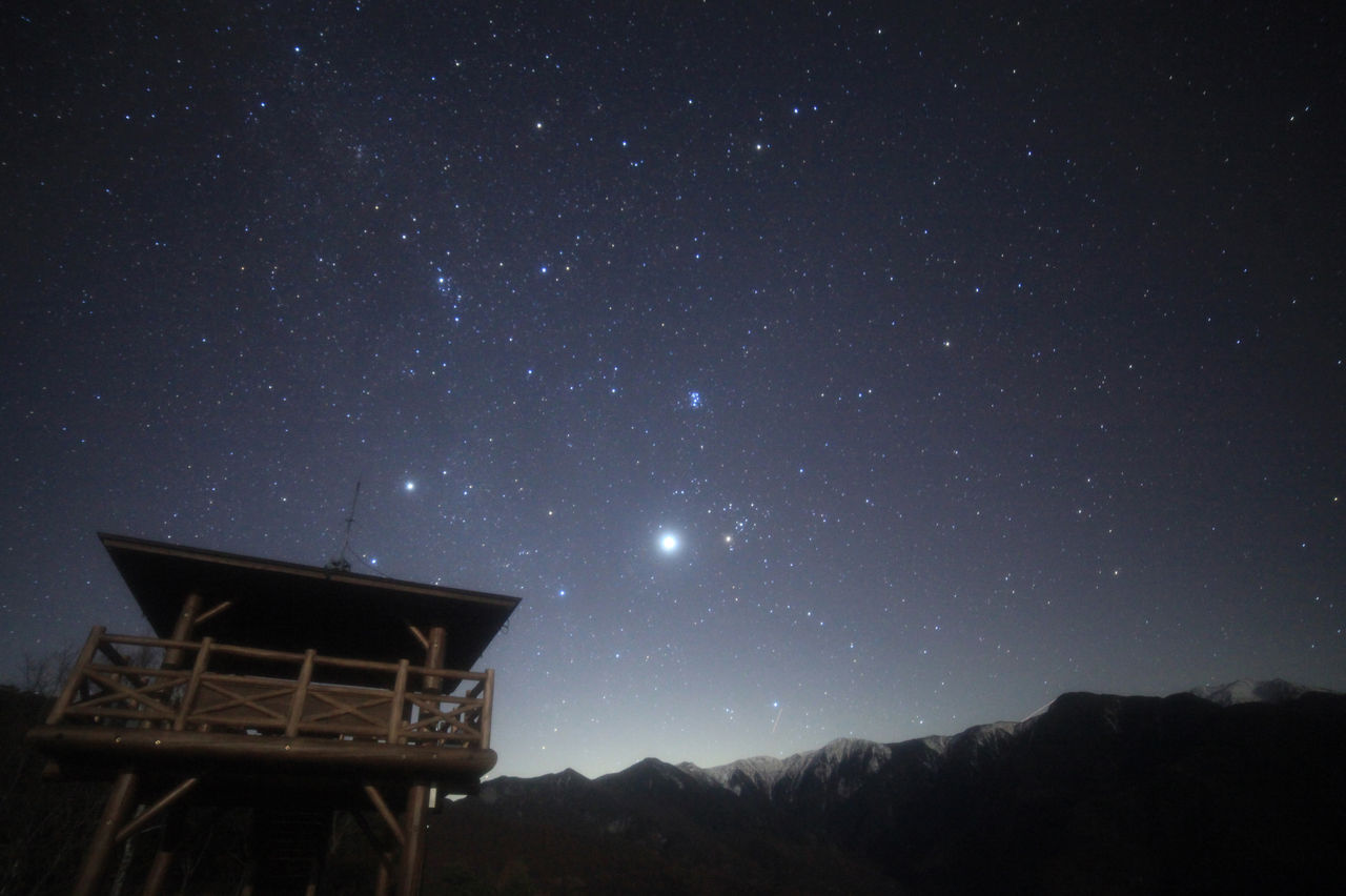 南アルプス稜線に上った木星 大鹿村鳥倉林道夕立神にて 20:06