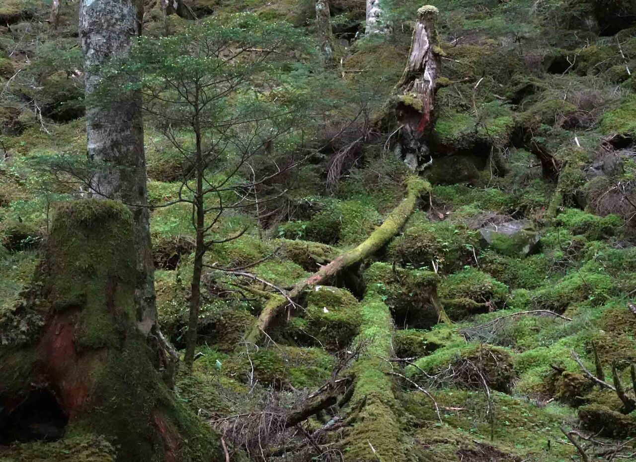 シラビソ、ツガの樹林帯 天然ヒノキチオールなのか針葉樹の心地よい香りに癒される