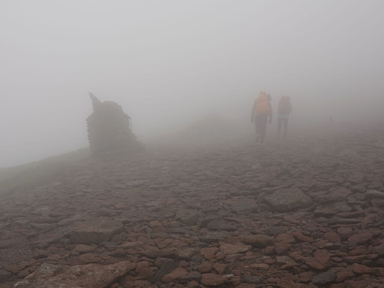硫黄岳山頂(2,760m) 左奥は非難用石室