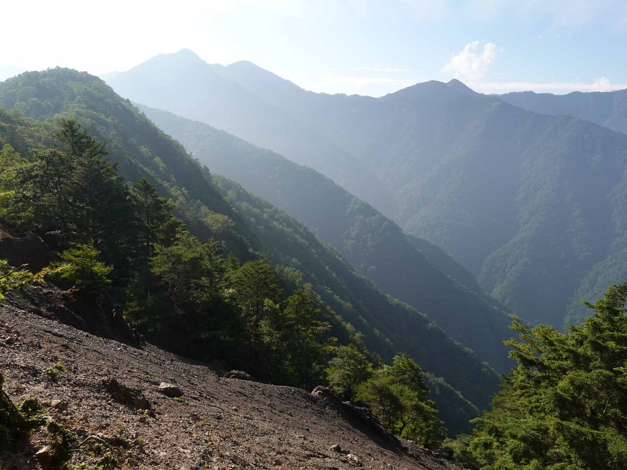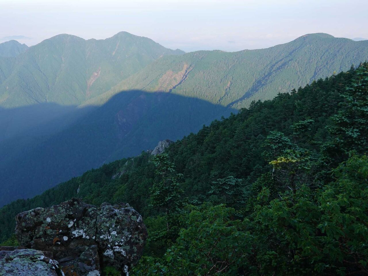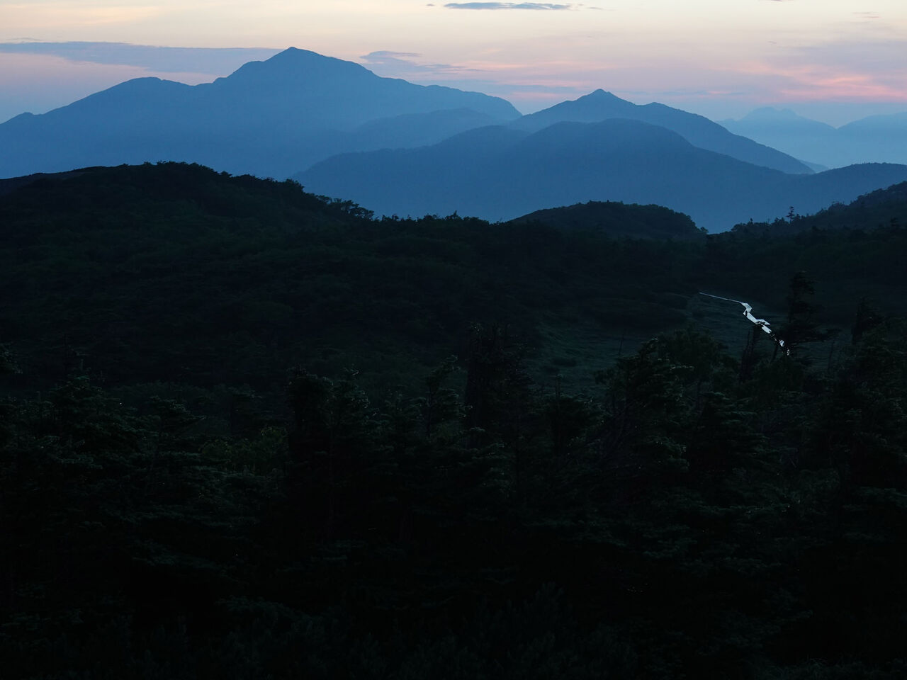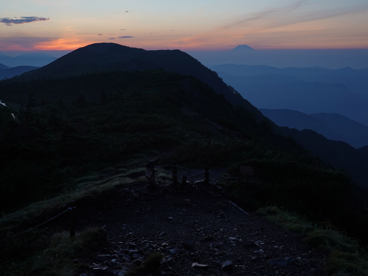 茶臼山山頂(1,415m)展望テラスからの萩太郎山(1,358m) 18:10