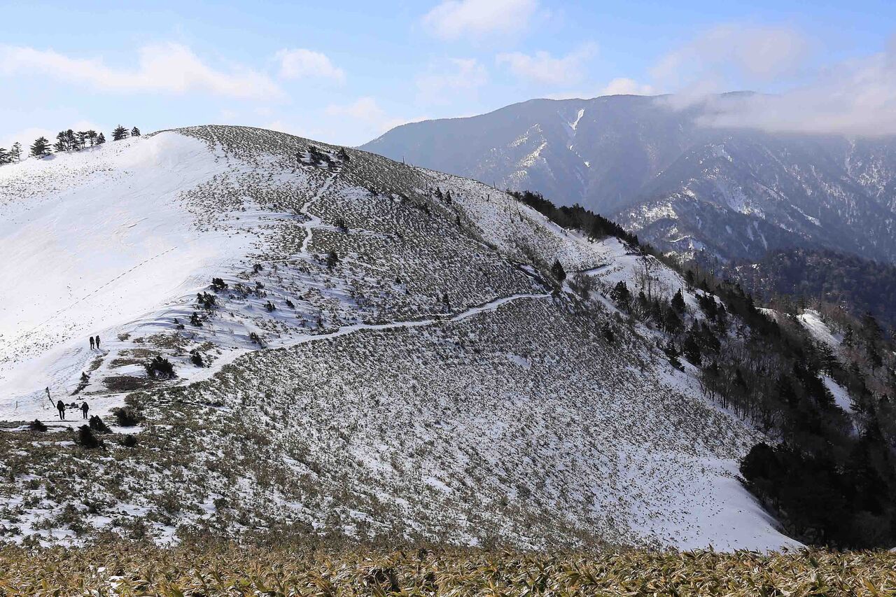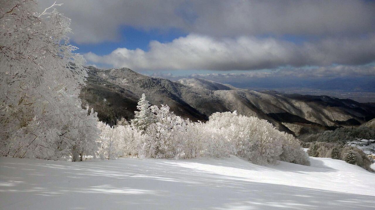 第1リフトを降りた地点 遠くに北アルプス連峰が望める