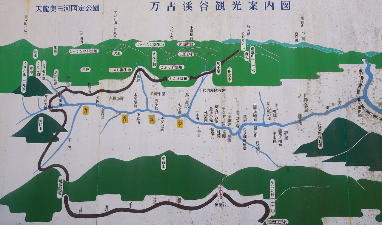 林道千遠線にある万古渓谷概略図看板 クリックすると大きくなります。