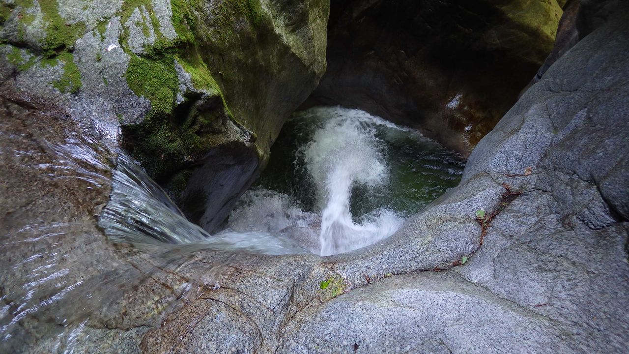 吸い込まれそうな「七ツ釜」 狭いゴルジュで相当深そうである