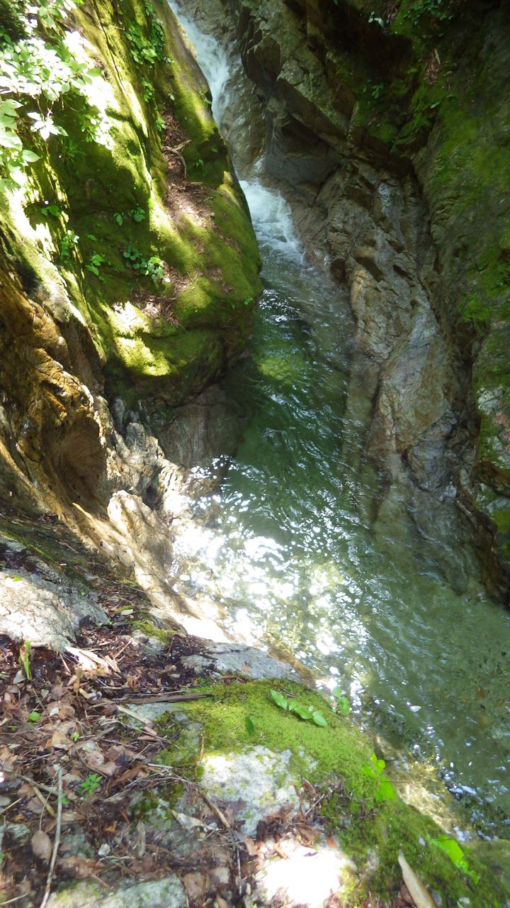 魚止めという名から考えて、釣人が入るのはここまでかと思います。上の林道から稚魚を放流しているため、魚止めの滝から上流にも魚がいます。正面向かって右側を30mほど高巻きします。眼下の死霊淵に吸い込まれそうな難所です。