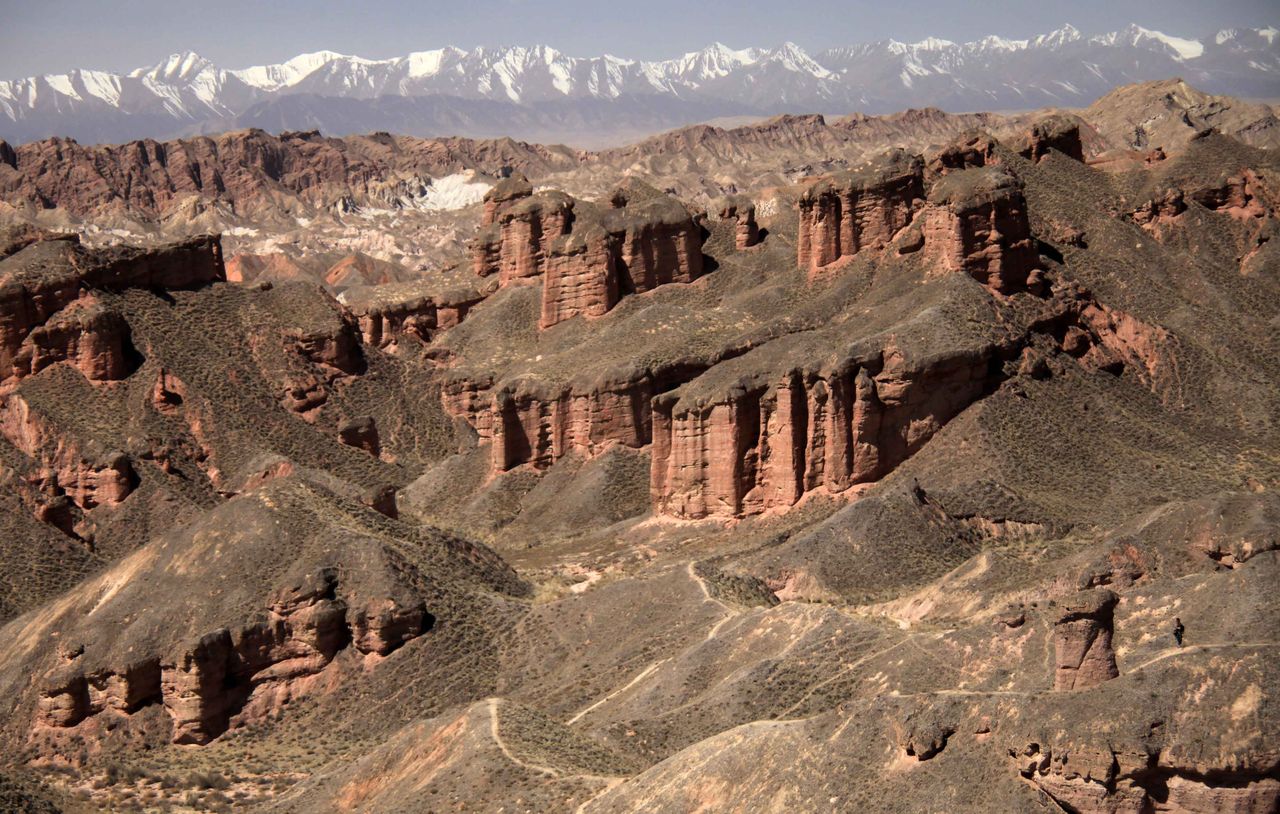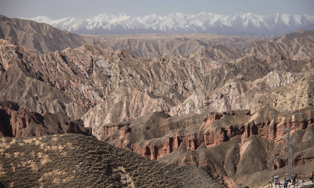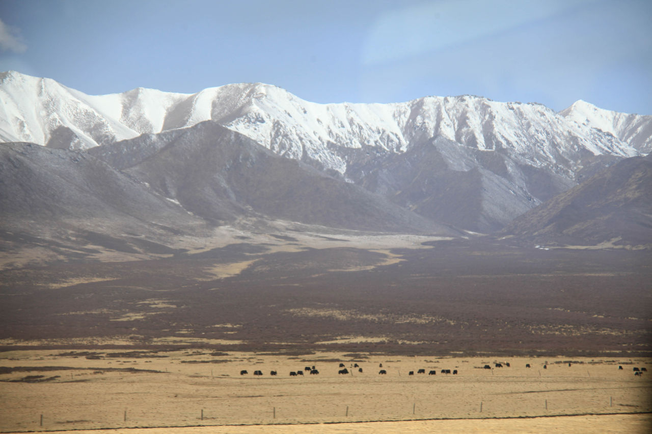 新幹線の車窓から眺める祁連(きれん)山脈は全長2000km、幅は200~500kmあり、4000~5000m峰が並ぶ