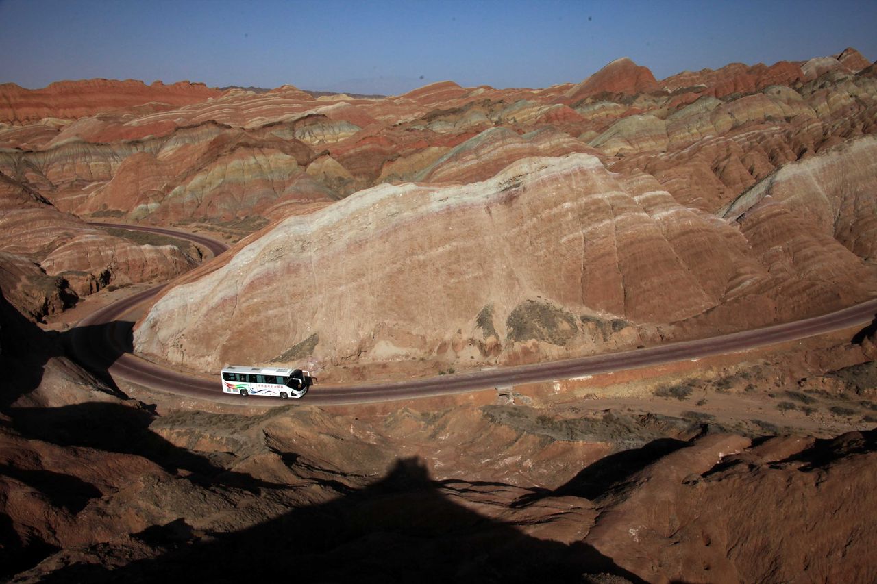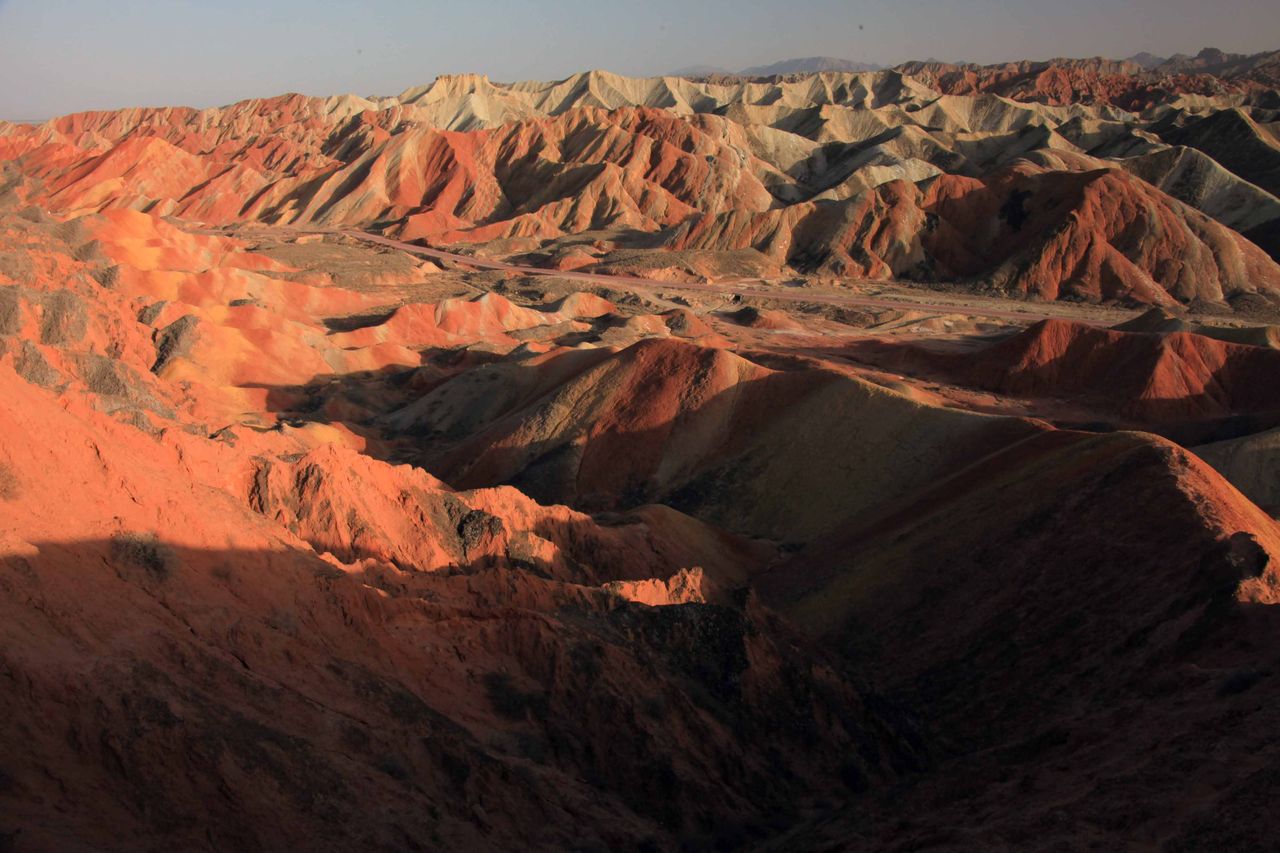 陽の向きによって岩肌の色が変化することから七彩丹霞と呼ばれる