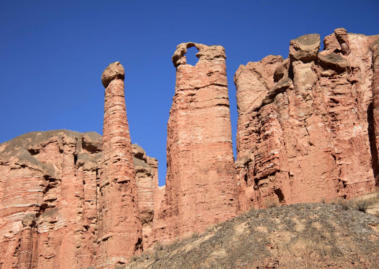 カルスト地形が石灰岩で成り立っているのに対し、丹霞地貌は砂岩や礫岩で成り立っており、中国にはこうした地形の世界遺産が3箇所もあるようです。有名なトルコのカッパドキアと同じように侵食された奇岩の地形です。地図と写真でご紹介いたしましょう。写真をダブルクリックすると大きくなります。