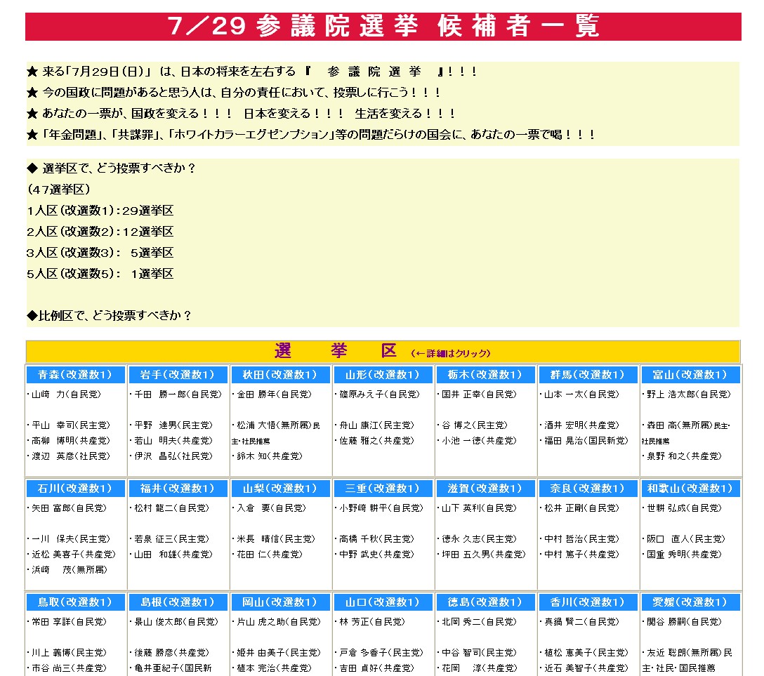 ÀµÄ¾¡¢À¤¾ð¤Ë¤â¡¢À¯¼£¤Ë¤â¾Ü¤·¤¤Ìõ¤Ç¤Ï¤Ê¤¤¤Î¤Ç¡¢ÃÕÀÛ¤ÊÌ̤¬¿¡¤¨¤Ê¤¤¤¬¡¢¤¼¤Ò¡¢¤³¤ì¤ò¸«¤Æ¡¢»²µÄ±¡Áªµó¤Ë»²²Ã¤·¤ÆÍߤ·¤¤¡¢¤È»×¤¦¡£