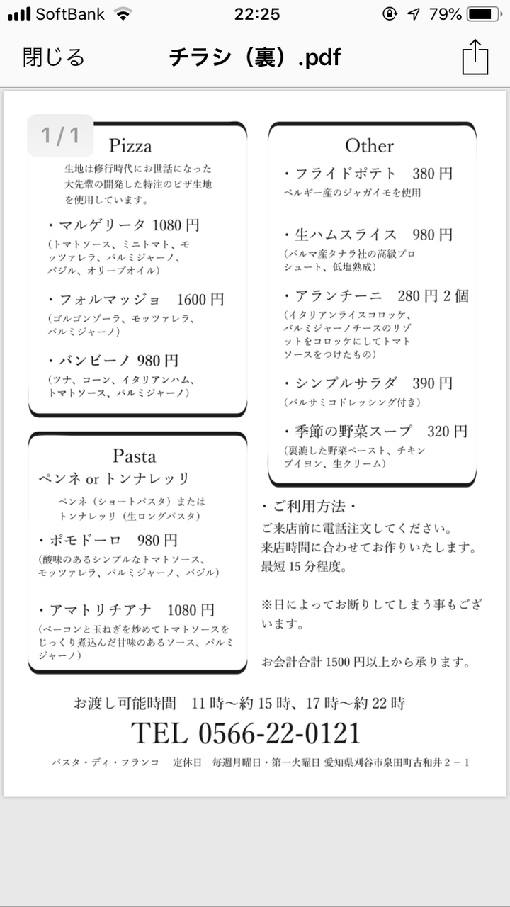 ピッツァと持ち帰りに向いているパスタ
