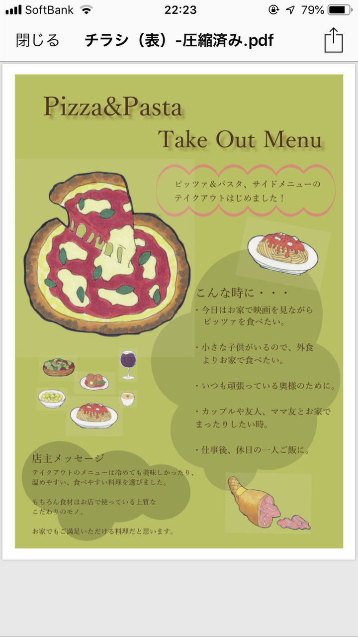 テイクアウトメニュー始めました。