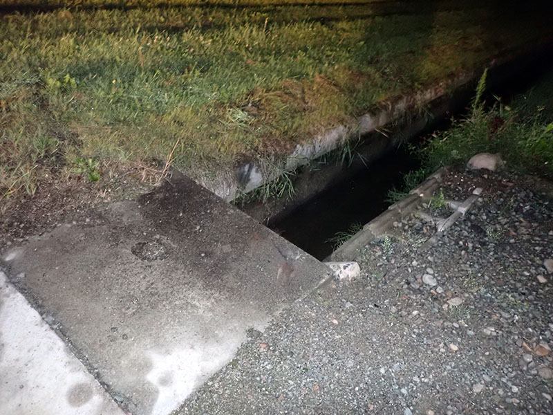 溝に落ちる