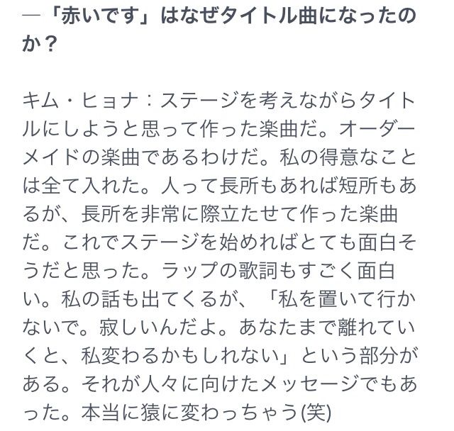 だから今回のカムバでそれを形にしてもらえて本当に嬉しかったです、という自分の感想…ww
