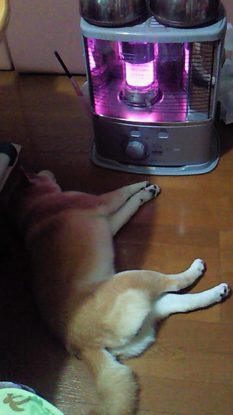 ぽん太さんもこのようにストーブの前でぬくぬくしております(*^□^*)