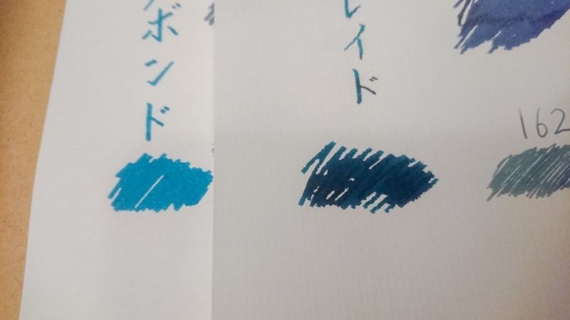 筆記直後はターコイズブルーともあさぎ色とも見える色