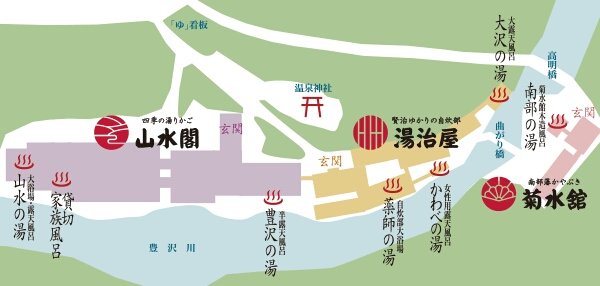 大沢温泉は、『山水閣』「菊水舘」「湯治屋」で構成されています。