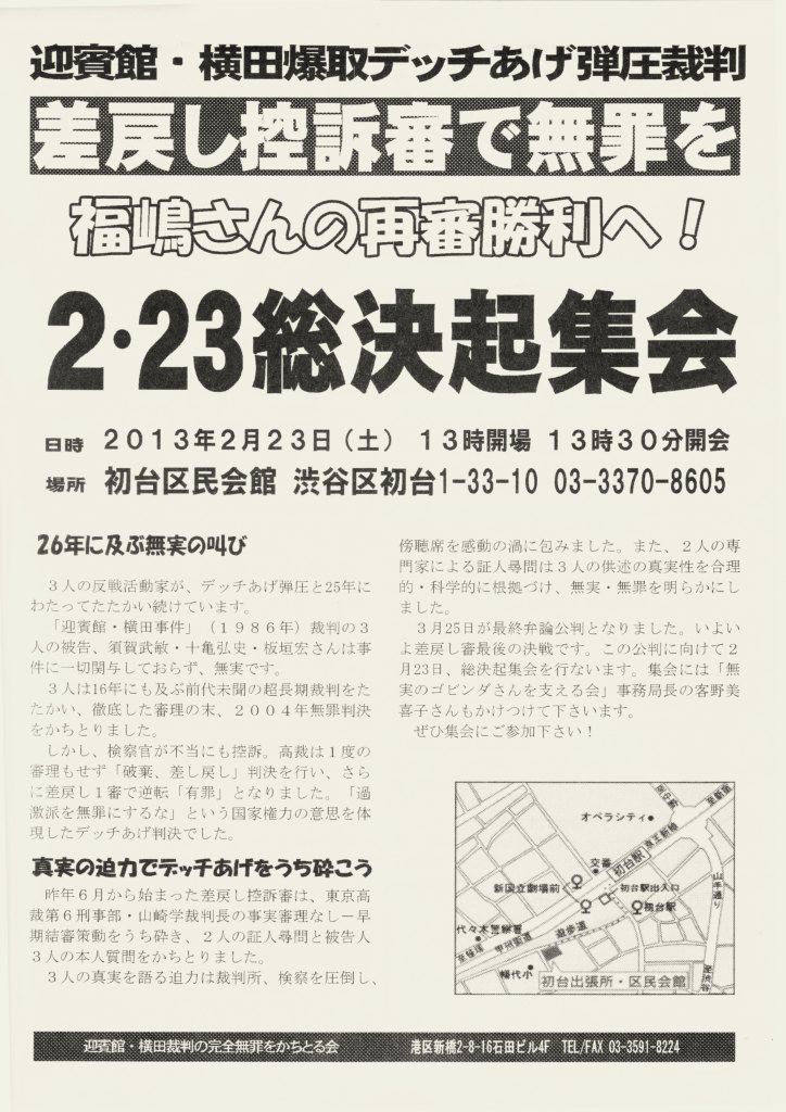 『迎賓館・横田裁判の完全無罪膏かちとる会』のビラより