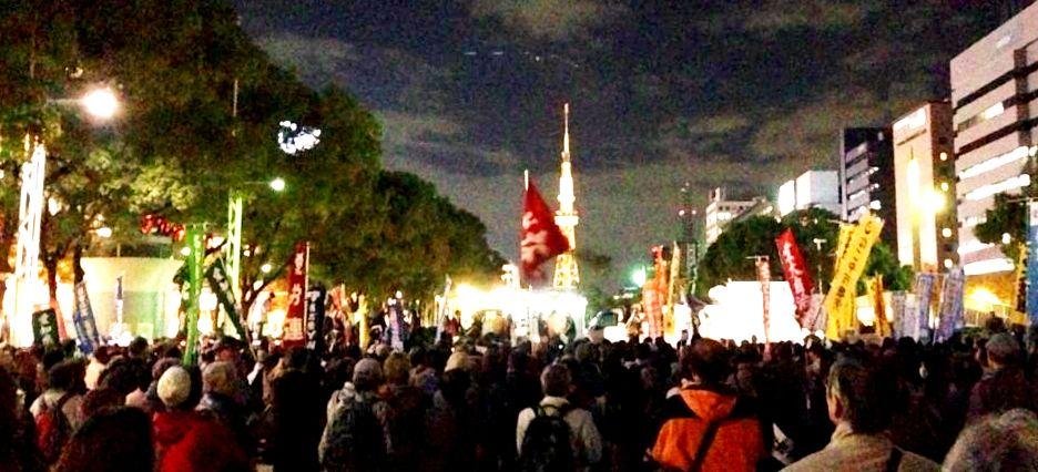 4時からは、雨もあがった新橋、銀座、有楽町と首都東京の中心街をデモ行進、「秘密保護法は戦争への道」「共謀罪も盗聴法もいらない」と訴え、多くの人々の注目を浴びました。さらに、東電前では、「原発事故の責任を取れ」「再稼働を許さないぞ」と怒りの抗議を叩きつけました。