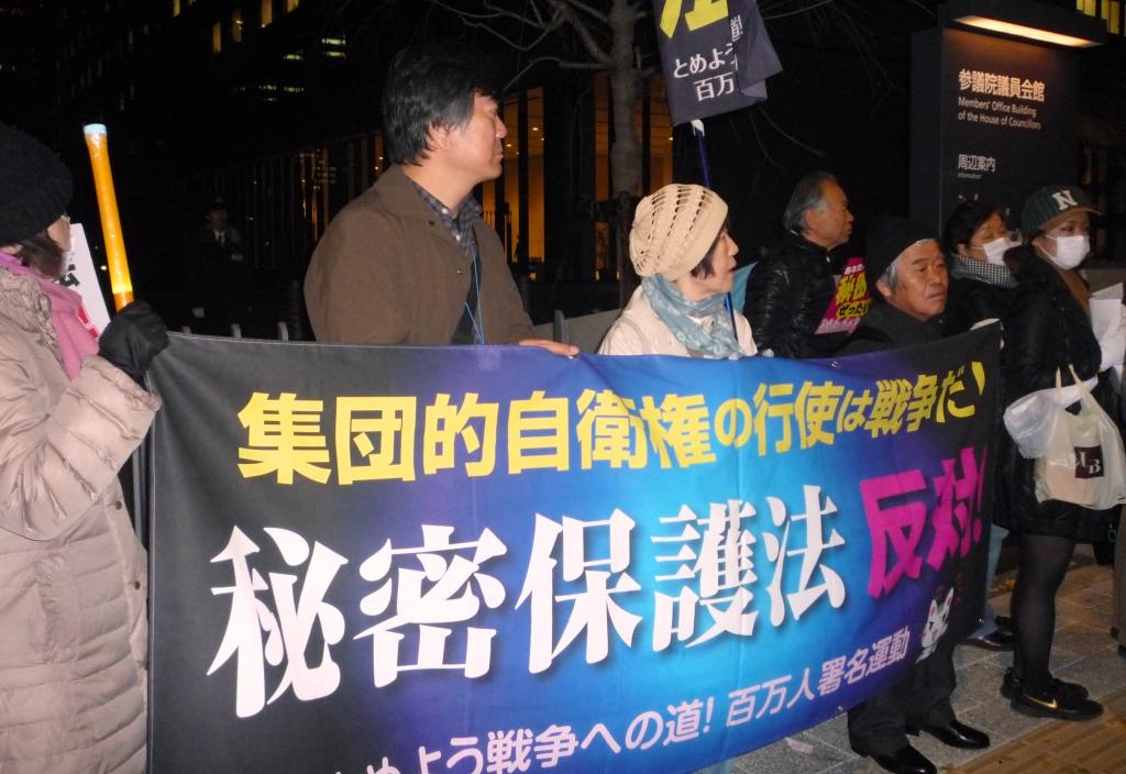安倍政権は12月6日深夜、多くの労働者・人民が反対する中で特定秘密保護法案を参議院で強行採決しました。自公両党が賛成、民主、共産、社民、生活、糸数議員、山本太郎議員が反対する中で採決を強行しました。