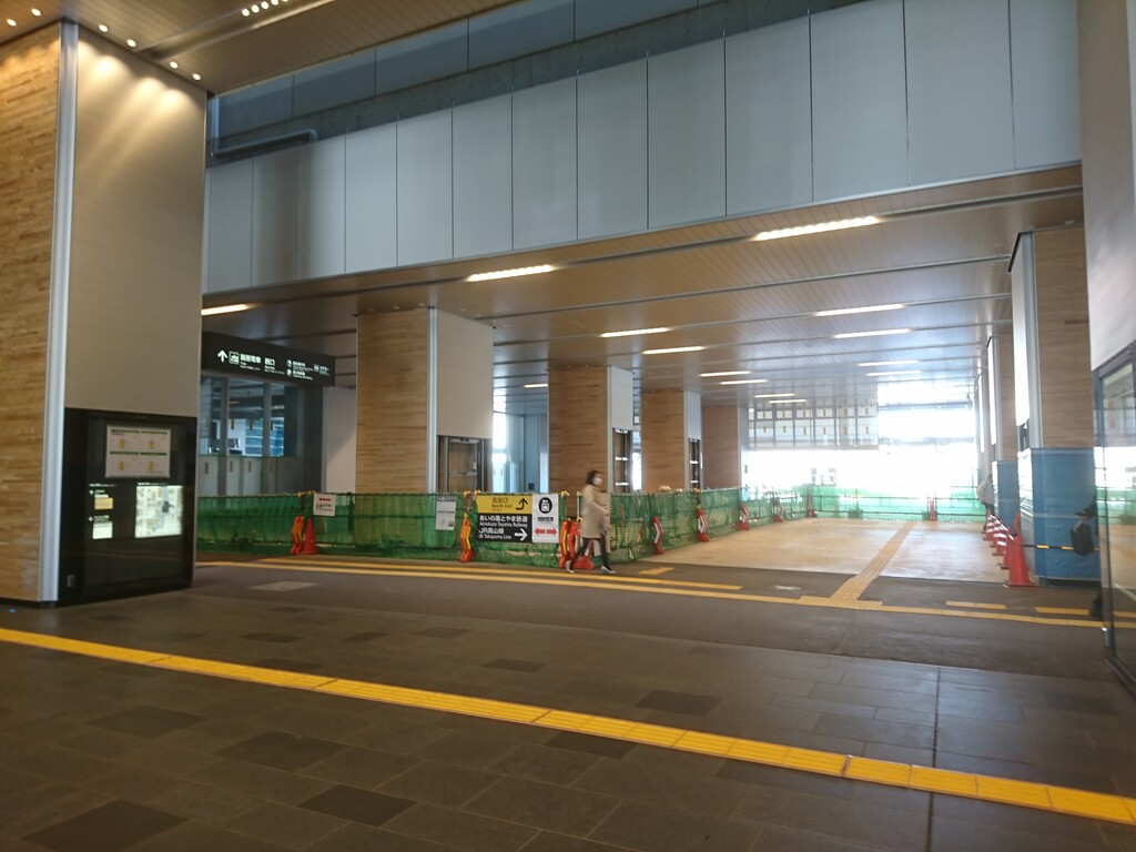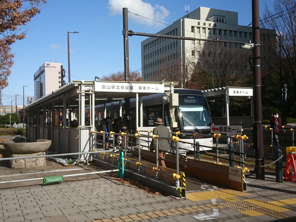 現在、ライトレールの富山北口は、オーバードホールのすぐ横にあるんだ。仮設ホームという感じ。