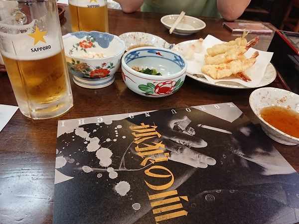 その後、地元の馴染みの居酒屋へ。パンフレットと一緒に。昨日のカレイの煮つけ、美味しかったなり♪チラシを眺める夏男も。