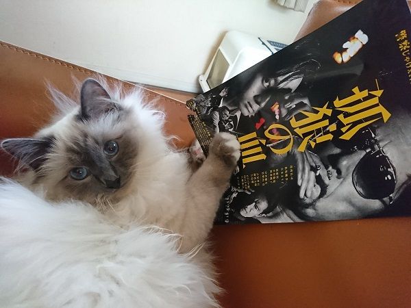 本日の写真、5月に観に行った映画⇒【孤狼の血】のチラシを握りしめる夏男。この映画の松坂君も良かったな。