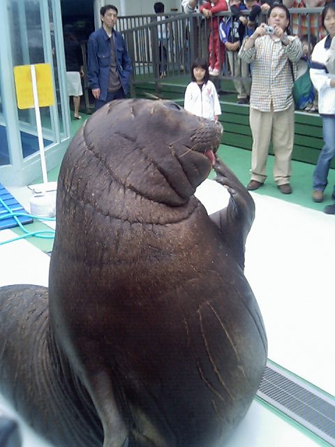 二見シーパラダイスに行ってきました。セイウチコミックショーがすごい!ショーを間近1mくらいで見れます。彼らの芸も一級品で、お姉さんのアナウンスのうまさもさることながら、お姉さんのトークと芸のテンポがよくて気持ちがいいです。