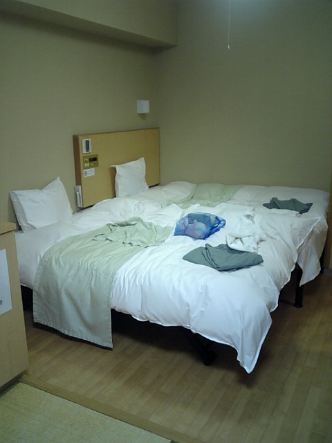 和洋室で、ベッドが2つあるんだけど、ダブルベッドとシングルベッドでハリウッド形式にできちゃうので子ども連れには Good かと。