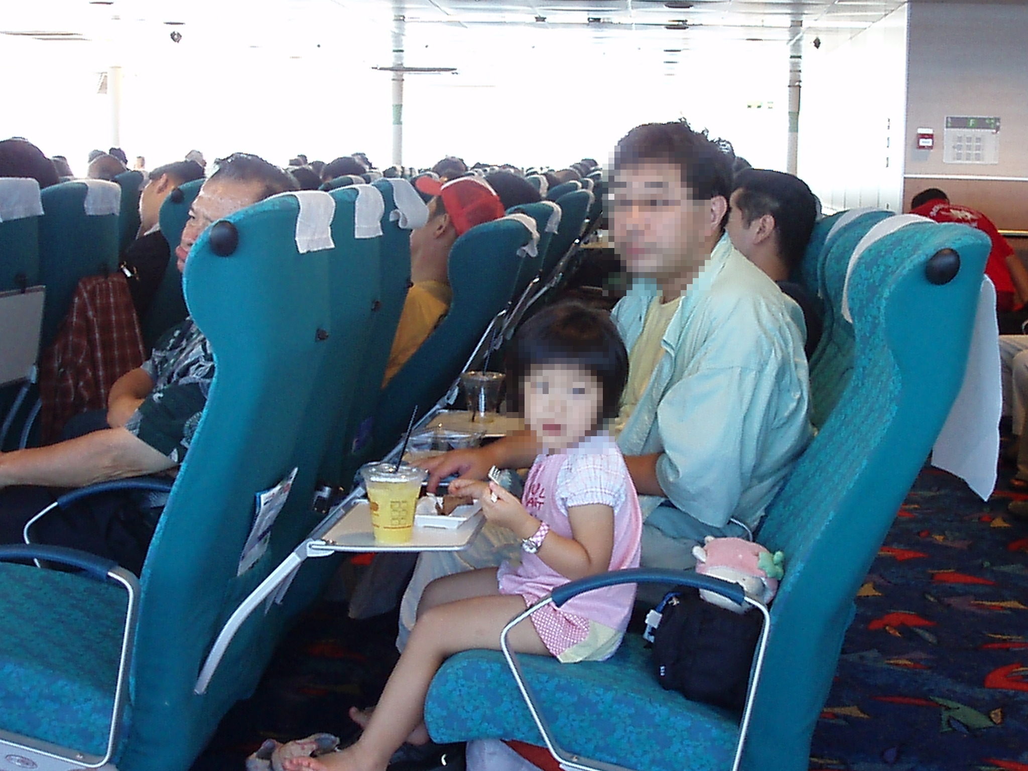 「このお船はお部屋はないのよ。全部イスなの。」と答えると、ものすごーく不満そう (^^;