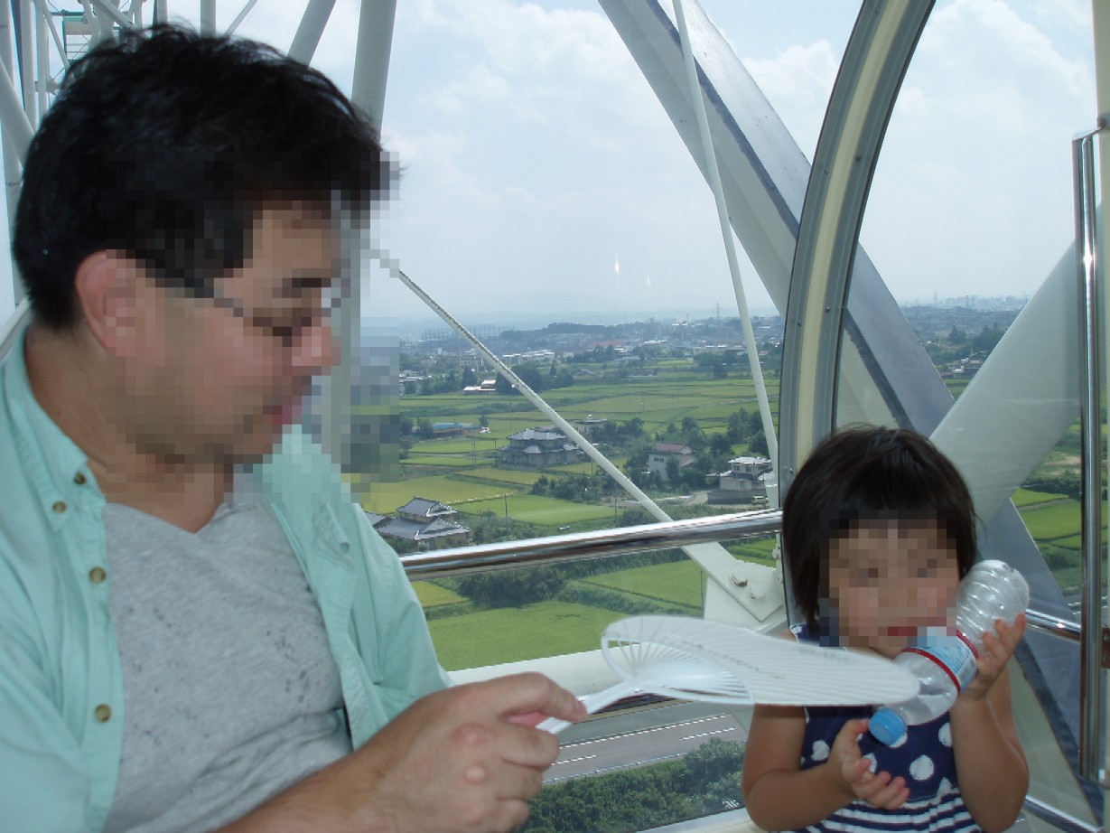 ぴよこが「アレに乗る!乗る!乗る!」と騒いでどーしよーもなく、買い物を済ませた後、炎天下の中、観覧車に乗りましたさ。