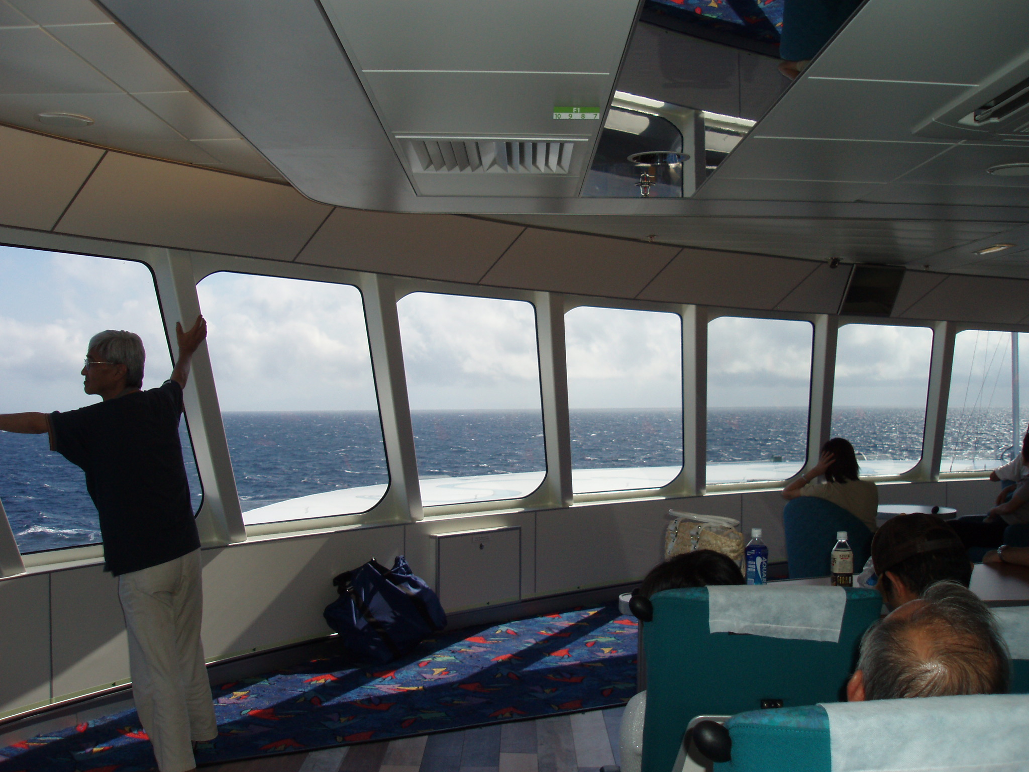 ちなみに、1ノットは1.852km/h なので、40ノットは約74km/h、16ノットは約30km/h です。往きに乗った船は、24ノットで約45km/h でした。