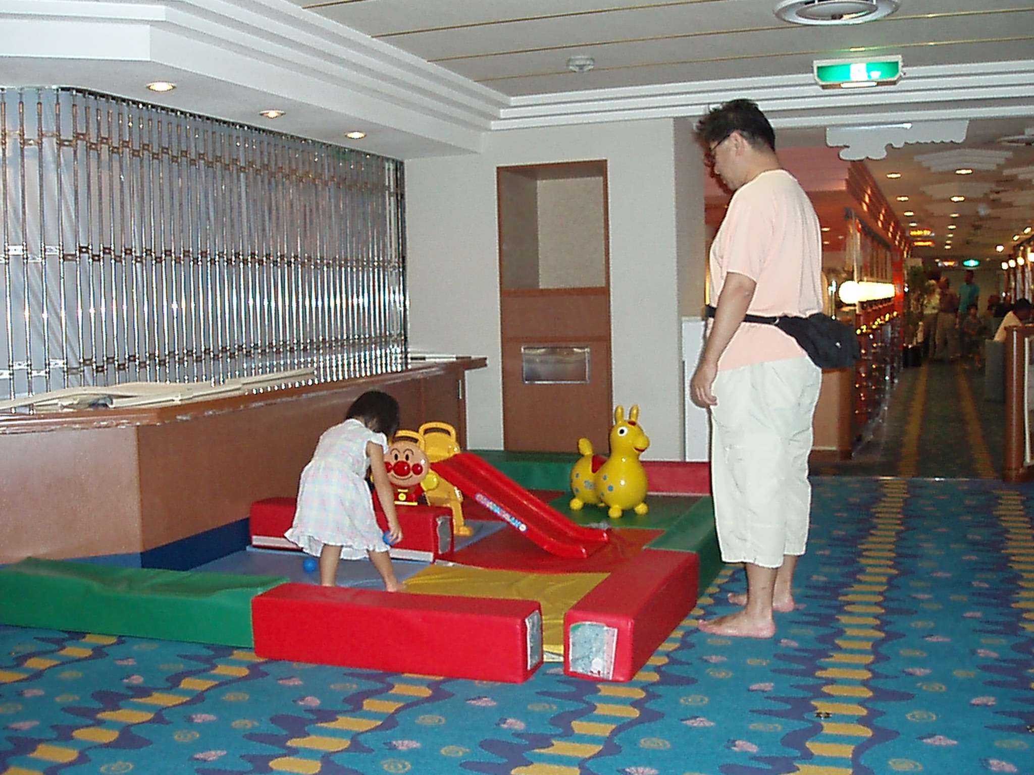 幼児向けのプレイルームもあるし、甲板に出て遊ぶもヨシ。ゲームセンターもありマス。朝風呂もOK。