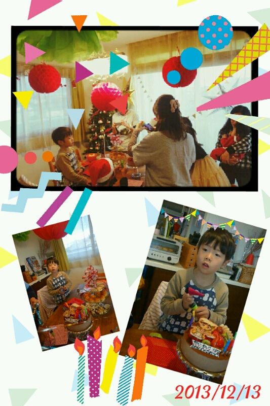 幼稚園が終わってからRちゃんち(クリスマス仕様のデコレーションが可愛い!)にお邪魔して、ケーキとお菓子とクラッカーでお祝い。