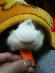 毛布の中に入って、大好きなにんじん