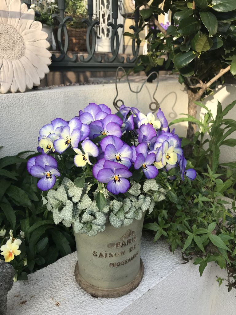 下草にラミウム、上にパンジー