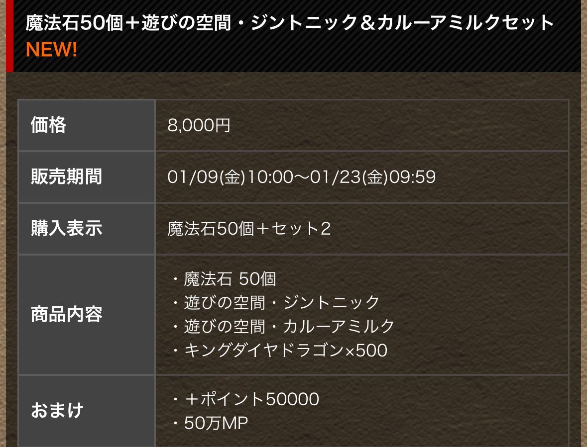 魔法石50個新春スペシャルセット480円!