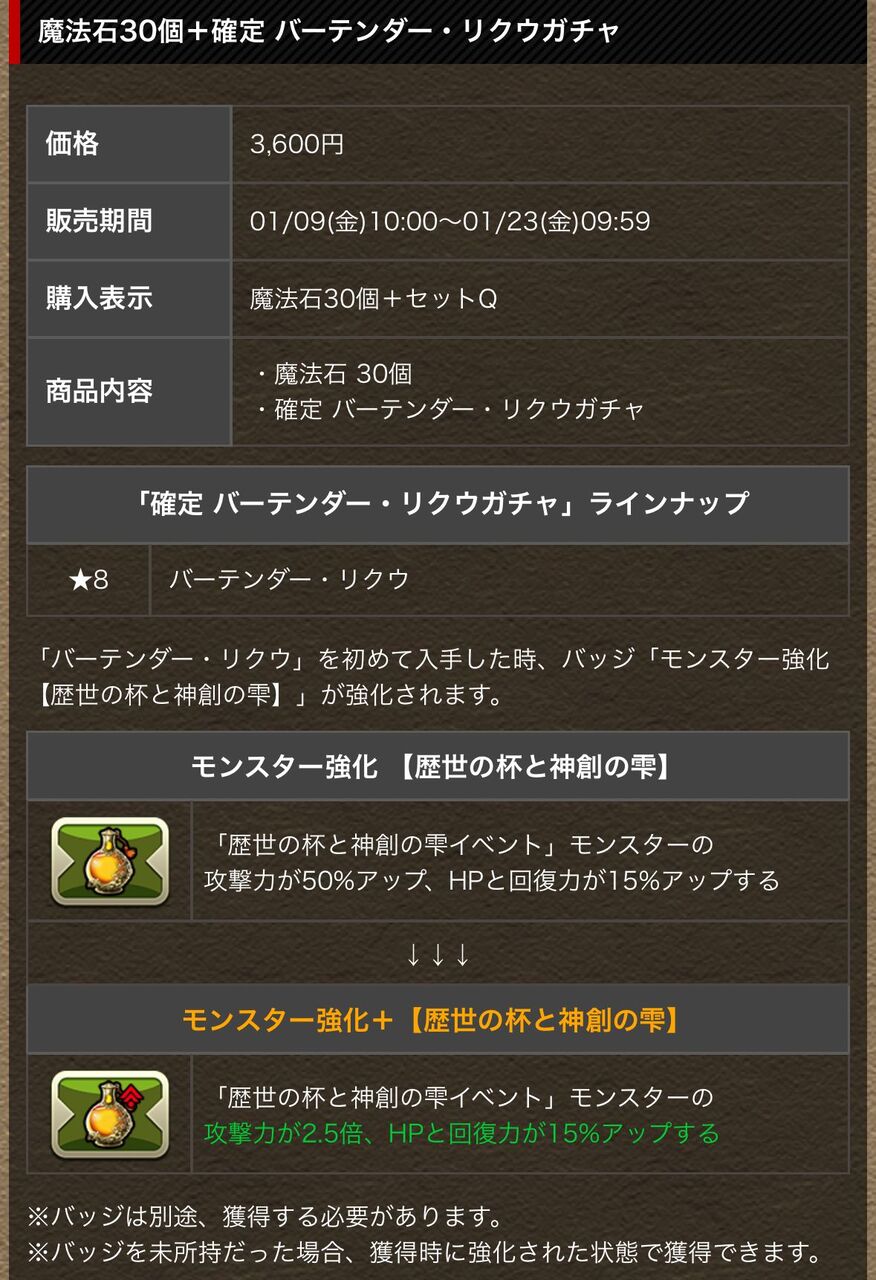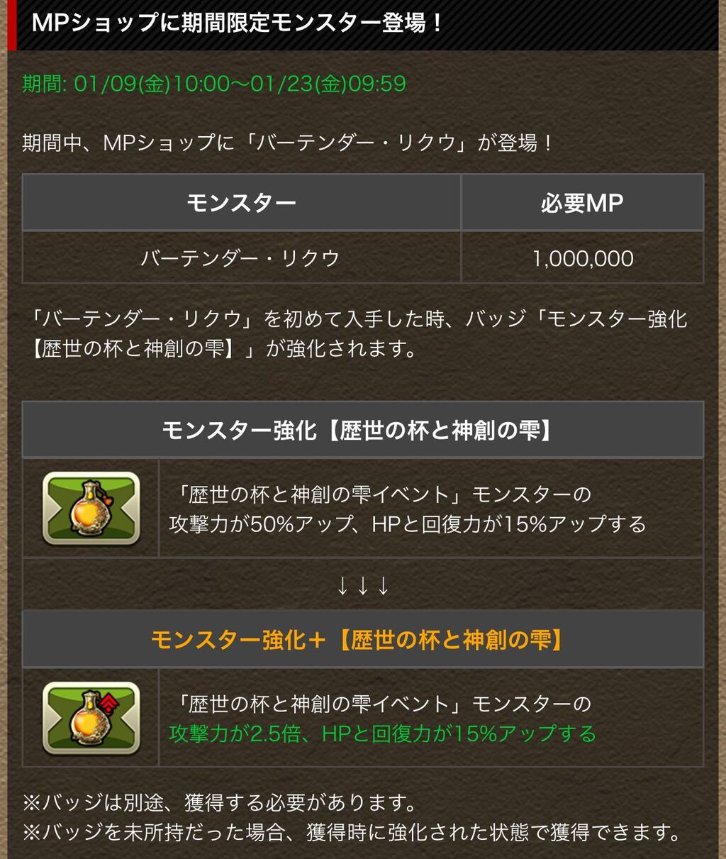 100万MP枠にはバーテンダー・リクウですね~。