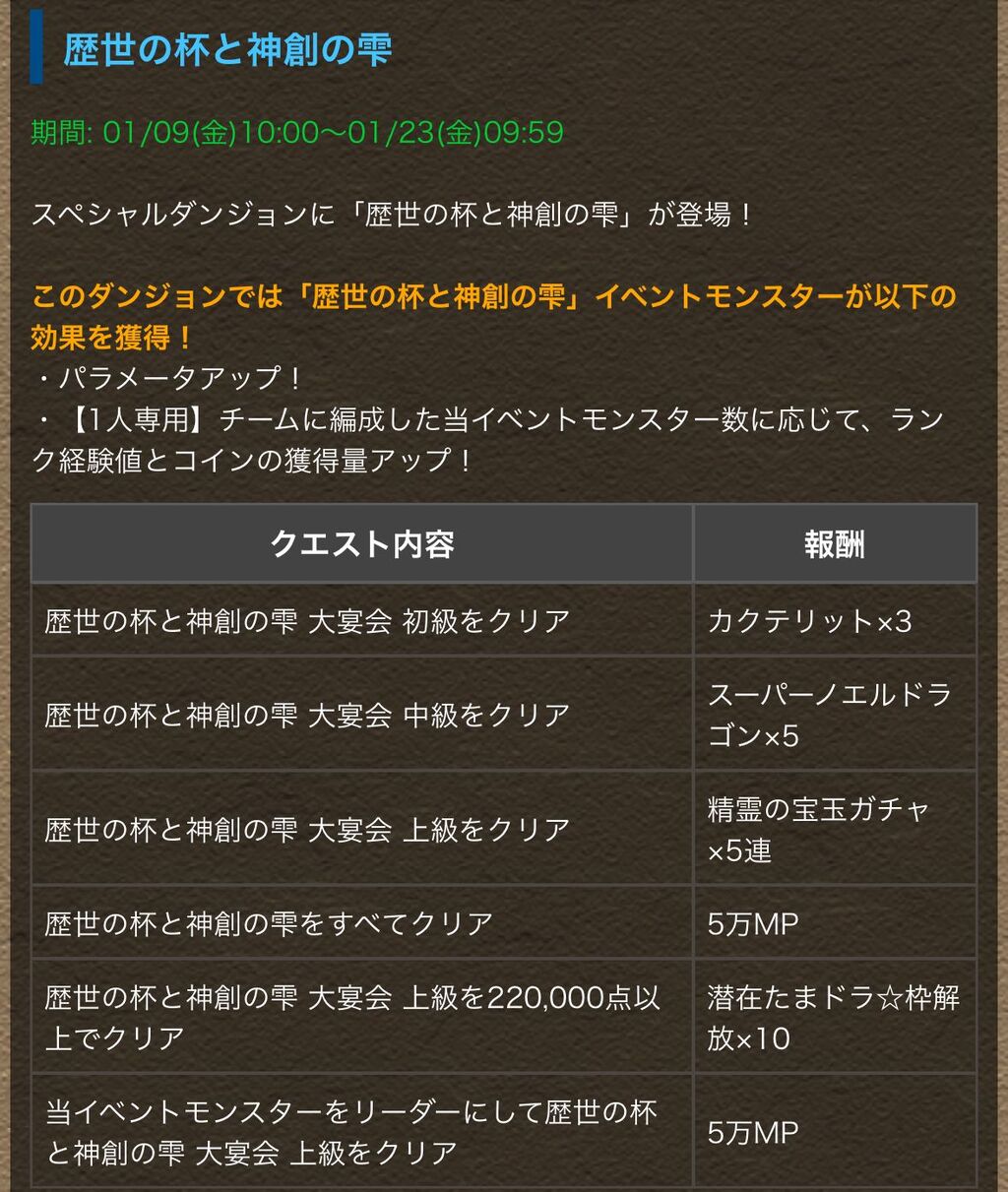 シロキセイリュウ降臨も+限界突破後+対象ダンジョン。